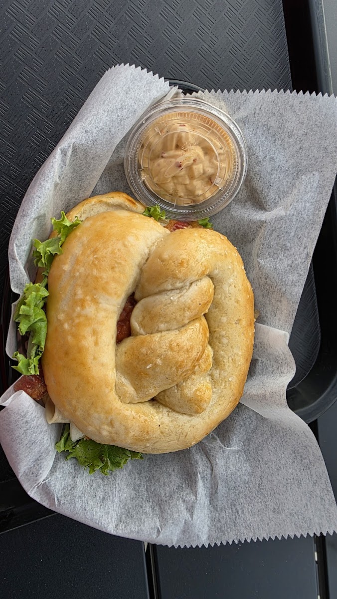 The menu is straightforward but thoughtfully put together, featuring breakfast sandwiches on a choice of breads—including a popular pretzel bun—and sides like fresh fruit or homemade baked goods. The breakfast bash, combining eggs, sausage, bacon, and cheese on your bread of choice, reflects a classic comfort-food vibe that fits well with the morning crowd. The variety of coffee options, including flavored hot and iced choices, makes it a convenient stop whether you need a quick pick-me-up or a leisurely slow sip.